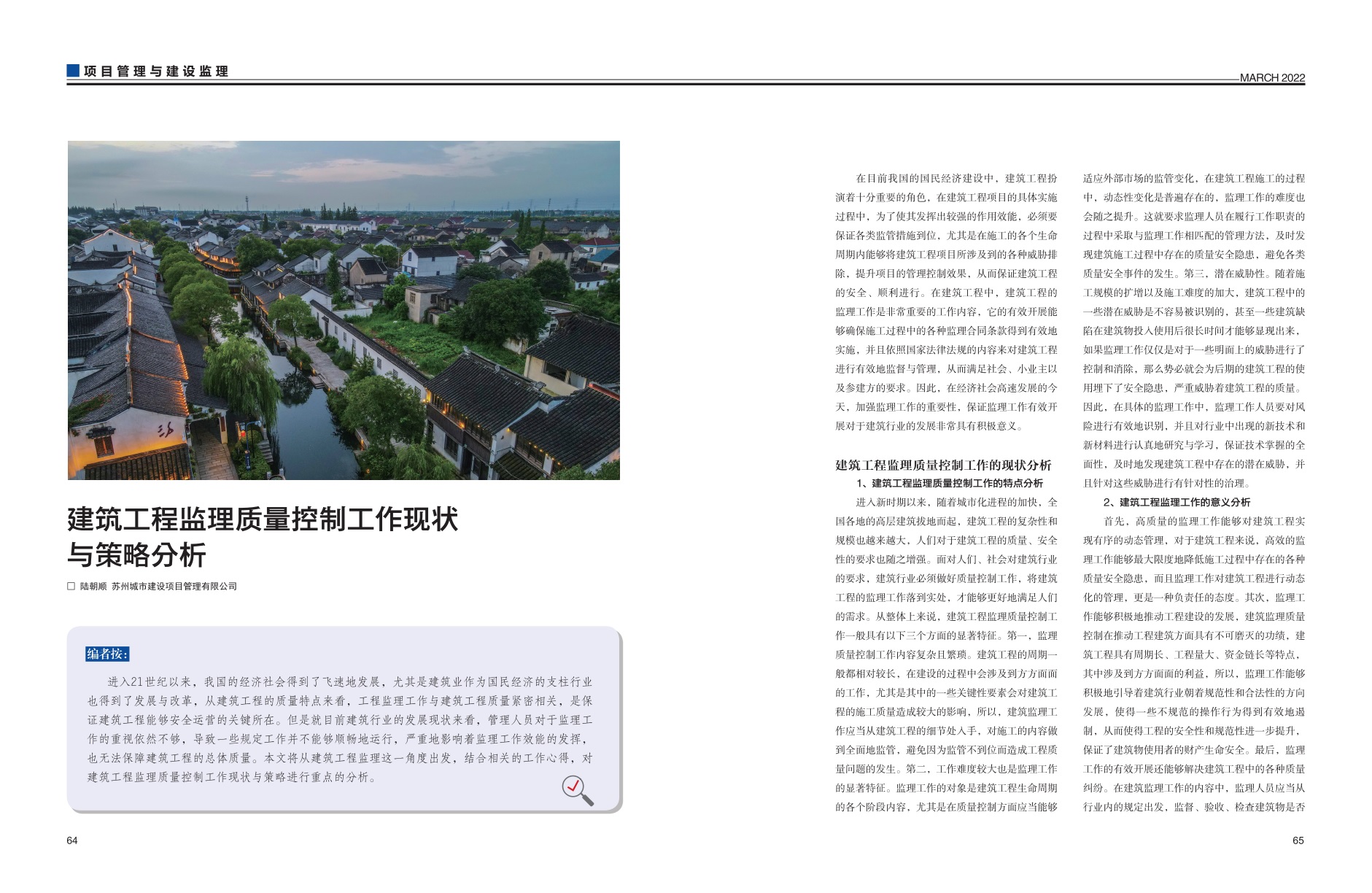 建筑工程監理質量控制工作現狀與策略分析--陸朝順