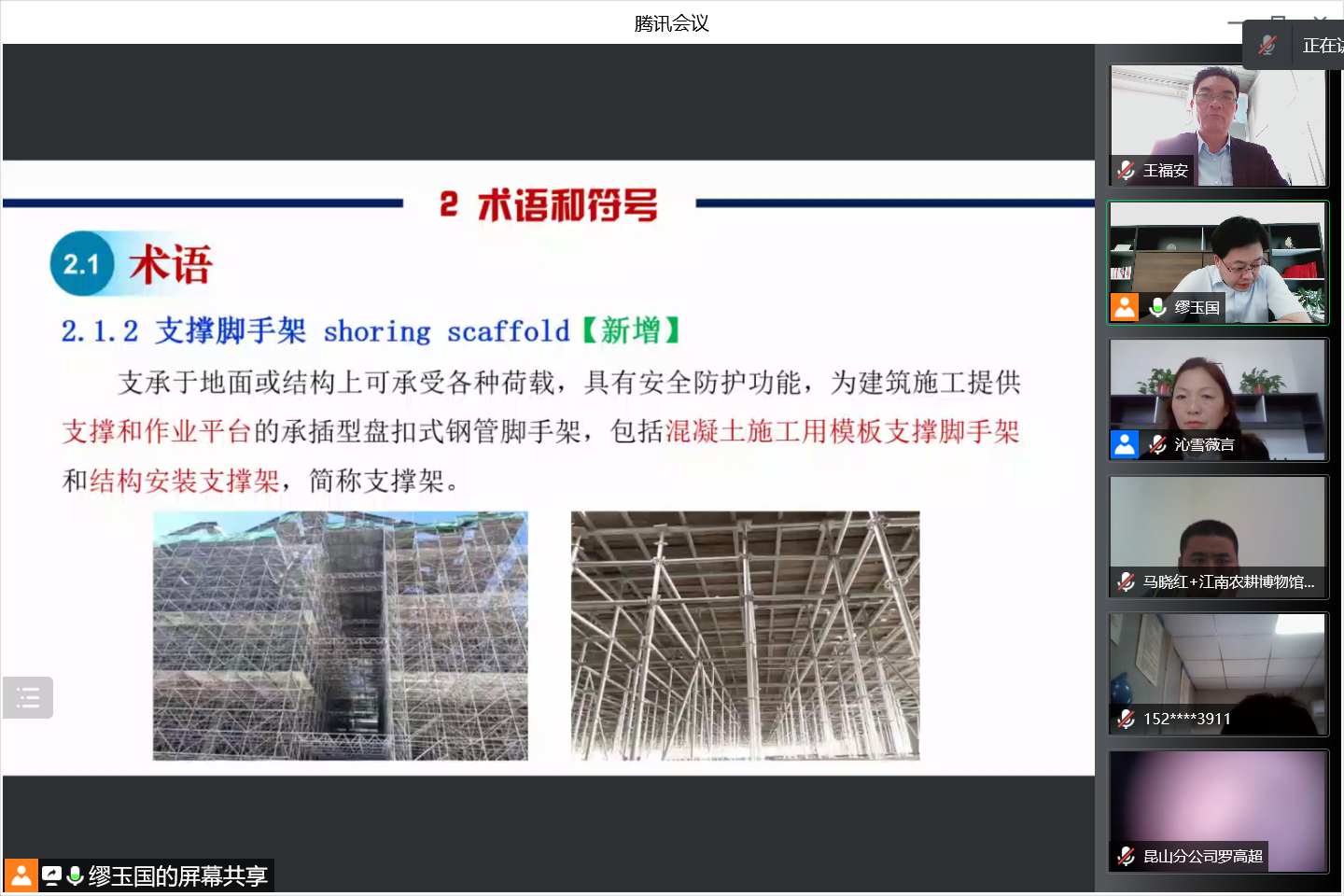 總工程師繆玉國對《建筑施工承插型盤扣式鋼管腳手架安全技術標準》(JGJ / T 231-2021)進行培訓。對標準的每個章節進行了詳細的講解,明確腳手架的用途,對支撐架與作業架的概念、腳手架安裝與拆除、檢查與驗收、安全管理與維護等內容進行培訓;強調支撐架計算過程中荷載的分類和所采用的系數及架體的安全等級、搭設高度、步距等對承載力的影響;解讀了標準中對支撐架和作業架的構造措施要求,諸如斜桿的布置方式和應用依據等具體要求,為參加培訓人員澄清了概念,更好地為專項施工方案的實施監管、現場檢查及管理工作厘清了思路,使得標準內容更加清晰和準確。同時,他強調,行業標準的推行將對盤扣腳手架專項施工方案設計水平、產品質量、工程進度和安全生產都起到積極推動作用,希望全體員工需要進行深度學習標準,提高思想認識,并將其嚴格運用到日常工程監管過程中,真正做到技術先進、經濟合理、安全適用。